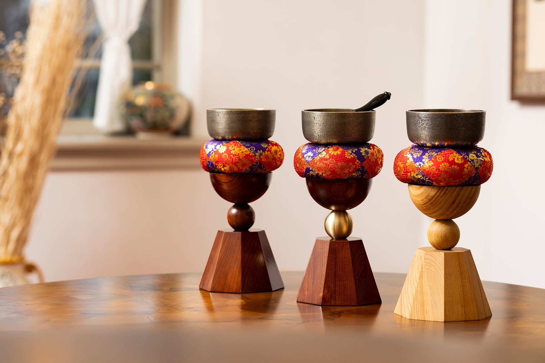 The crystalline tone of the orin bells, meticulously crafted by FUTAKATAYA, unfolds into a pure resonance. Traditionally reserved for rituals for its purifying power, this sound now fills the space, weaving a delicate intimacy among those who share it.