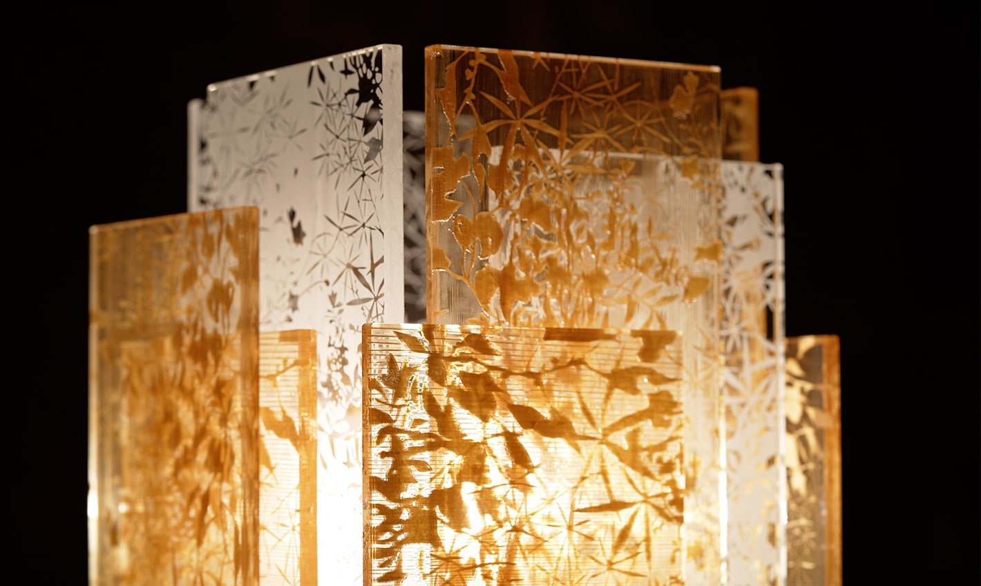 A product that combines the traditional techniques of Kyo Karakami with various innovative technologies. The pattern of Karakami emerges subtly, creating an atmosphere of fantasy.