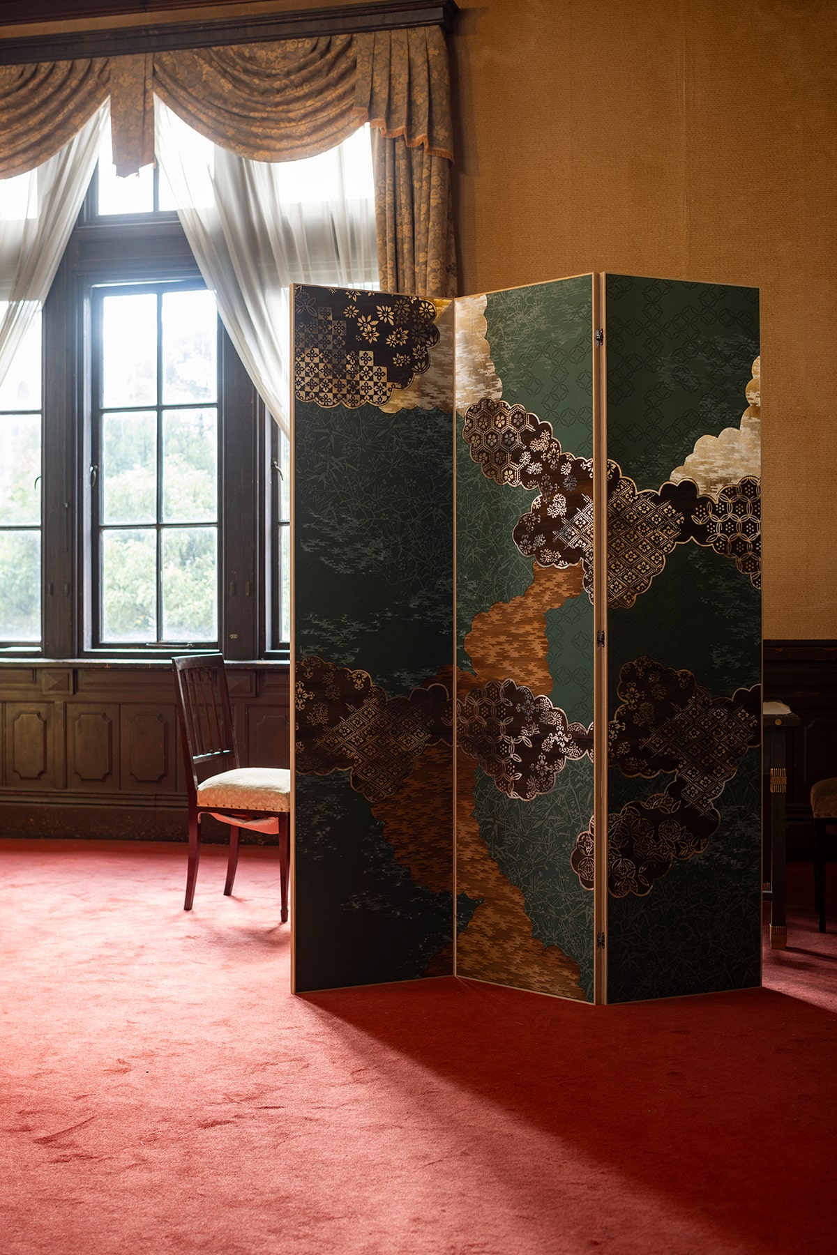 KYO KARAKAMI MARUNI is a master of Kyoto’s traditional printed paper (Kyo Karakami), founded in 1902. With some 300 carefully preserved 19th-century woodblocks (hangi), the ancient patterns, traditional pigments, and ancestral craftsmanship continue to live on, carrying the soul of the past into the present. Each creation of KYO KARAKAMI MARUNI is born from the unique encounter between wood and the human hand, offering a texture and depth that only tradition can bestow. These works harmoniously integrate into traditional architecture, while also finding their place in modern spaces—stores, hotels, or ryokans—infusing the essence of Japan into wallpapers, decorative panels, partitions, and lighting, where light and material engage in poetic dialogue. It is also the only Karakami studio to have obtained fire-retardant certification, ensuring the indispensable safety required for the use of this material in public facilities in Japan.
