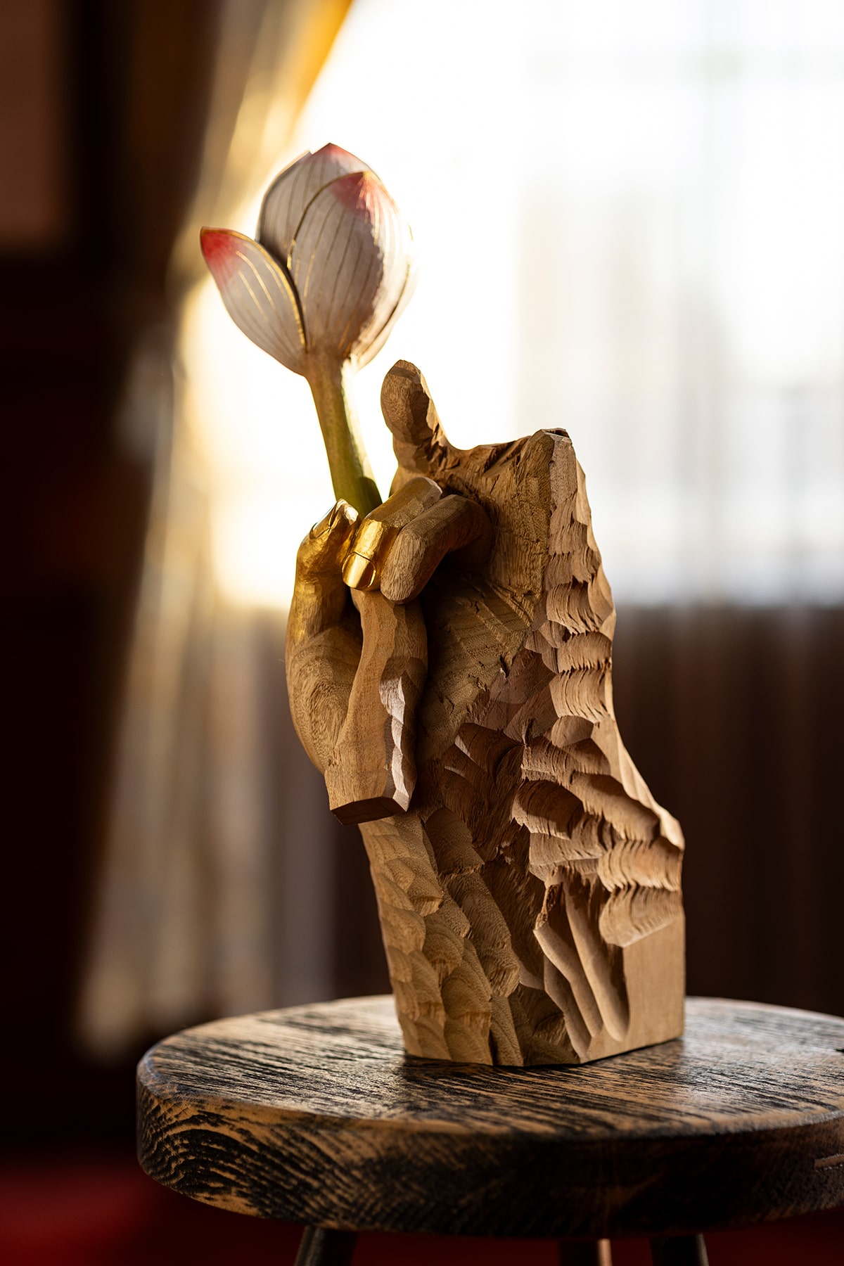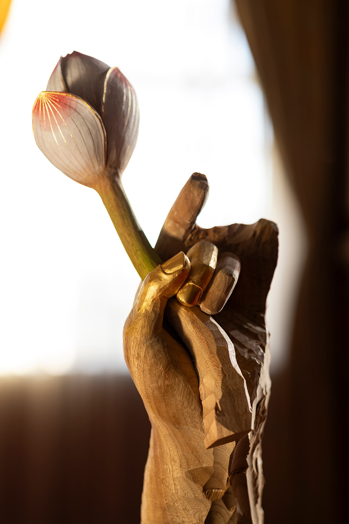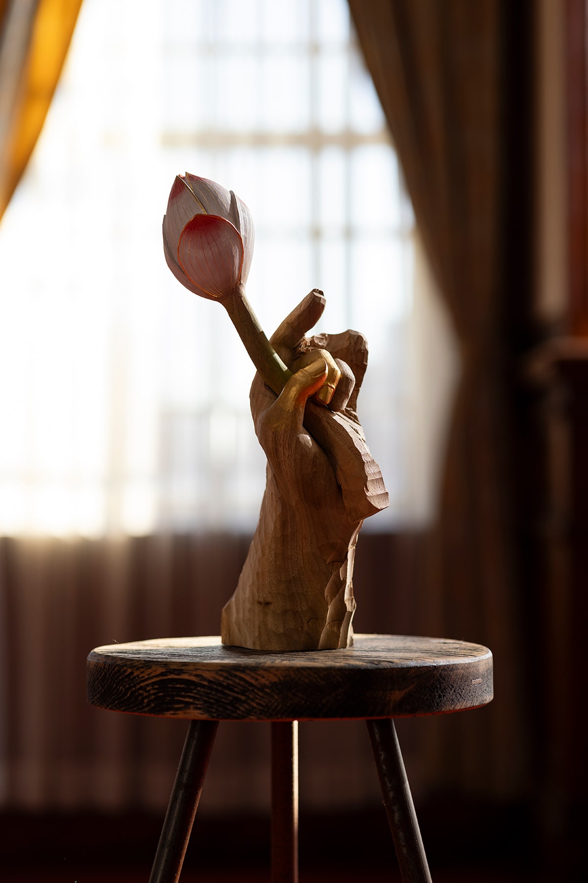 For over a century in Kyoto, TOMITA KOUGEI has shaped wood with patience and precision, engaging in a silent dialogue with the material. The workshop focuses primarily on Buddhist statues and ritual instruments, spaces where prayer takes tangible form. The statues embody the prayer; the instruments support its gesture. Both reflect the profound soul of Japanese woodcarving. Most of these works find their home in temples, where for a hundred years and more, they remain at the heart of devotion. Japanese woodcarving traces its roots back over a millennium, flourishing alongside the culture of the sword. Faithful to inherited spirit and technique, TOMITA KOUGEI pursues each day the quest for a living tradition, open to the present. Today, TOMITA KOUGEI also explores the creation of jewelry inspired by the forms and symbols of Buddhist statues and ritual instruments. These are not mere ornaments, but ways to carry the spirit of the Buddha — a protective, intimate presence. The beauty of prayer cradled in the hand, a breath of serenity invited into daily life.