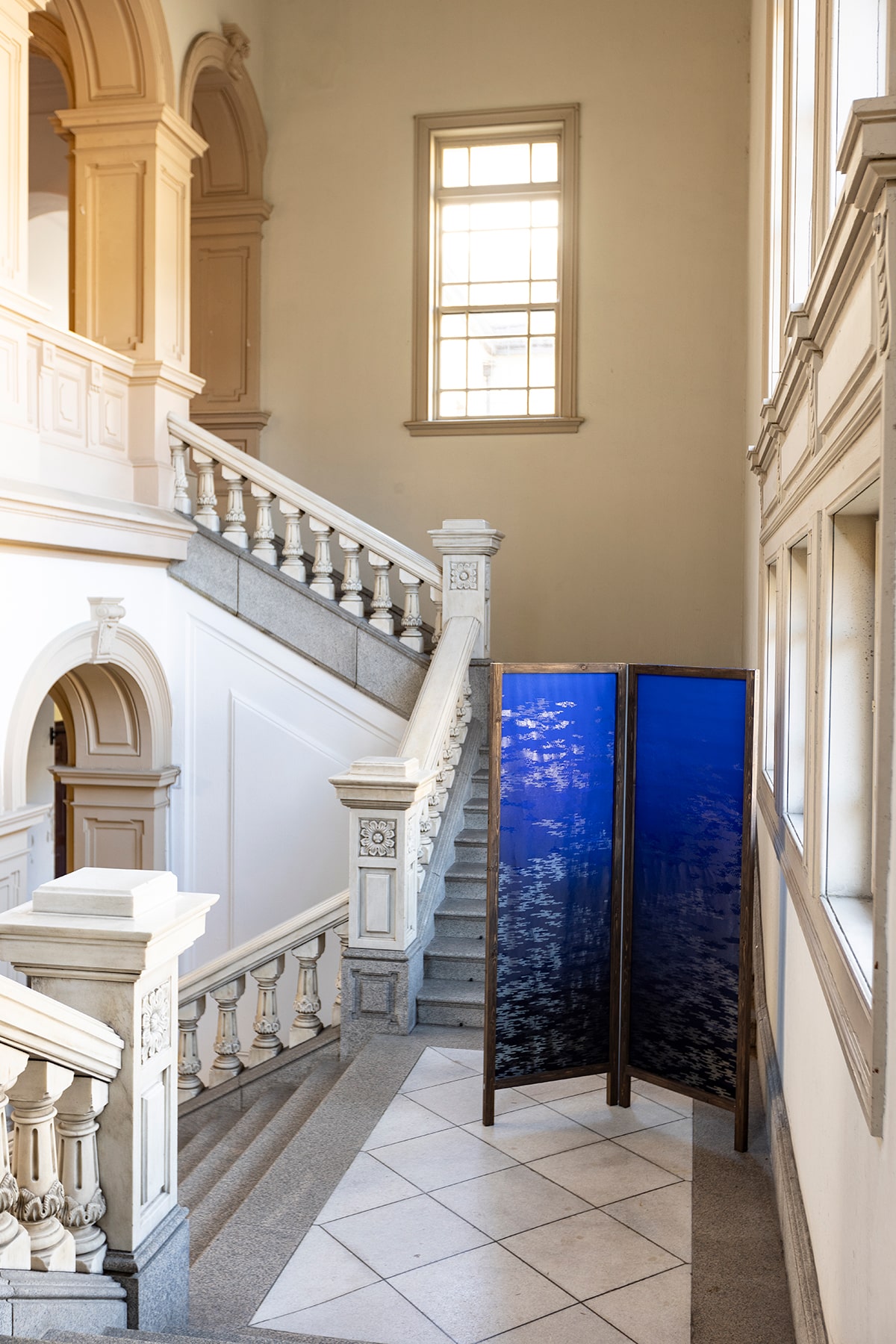 The kintsugi (gold-joined) pattern combines a part of the woven pattern of the company's classic series with gold highlights. By applying it to the entire wall, it is possible to create an organic marble-like appearance.