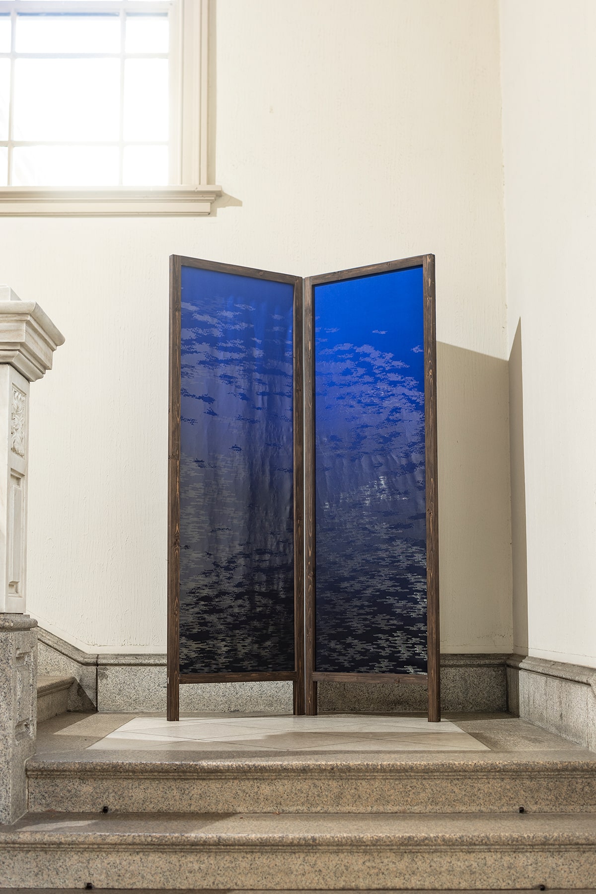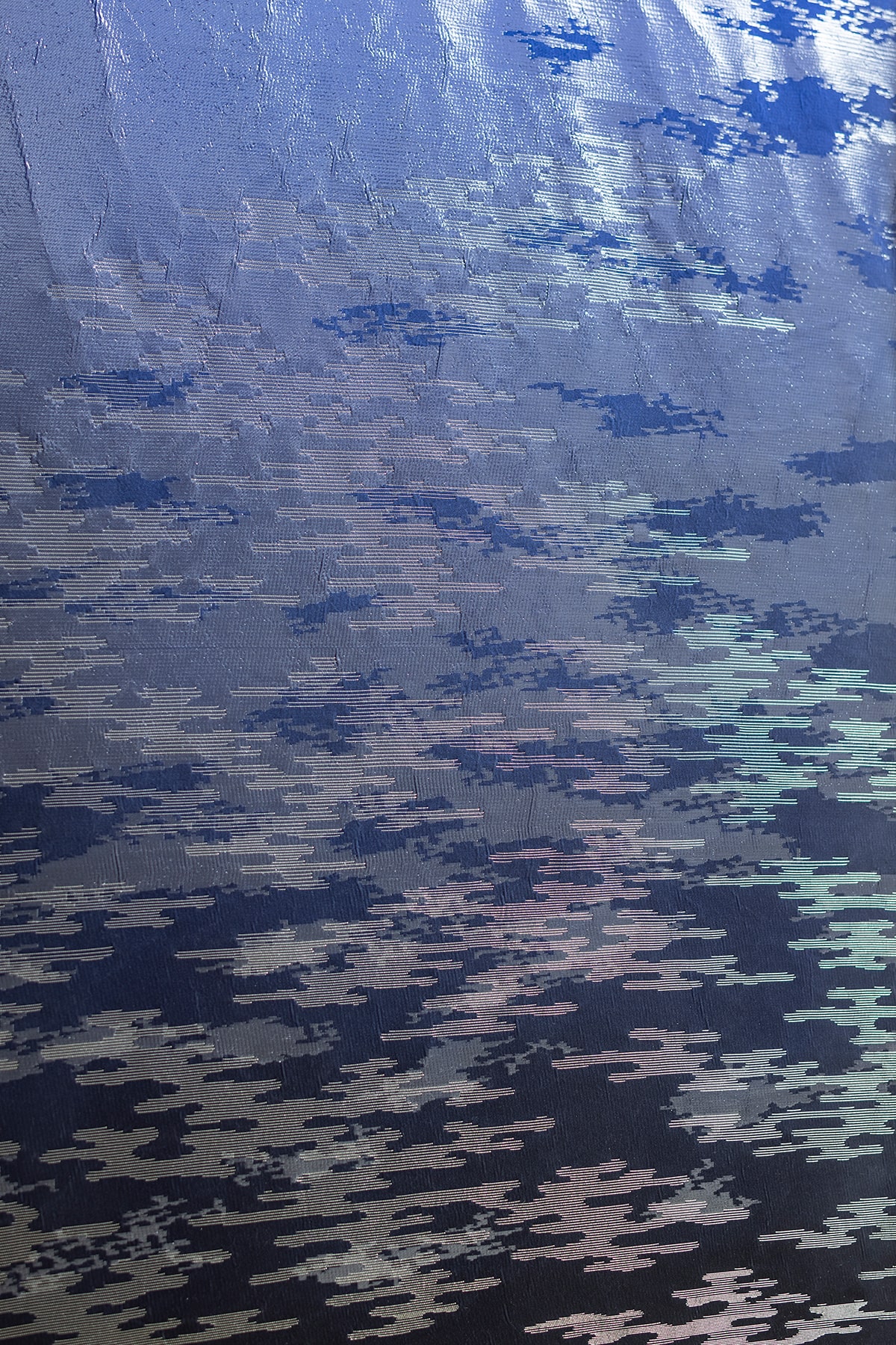 京都・西陣の機屋 「渡文」が、絹の上に、夜の訪れとともに姿を変える水のゆらめきをそっと重ねる。恥じらいという繊細なヴェールが、影を撫で、魂をかすめる秘めやかな息吹のように解けてゆく。